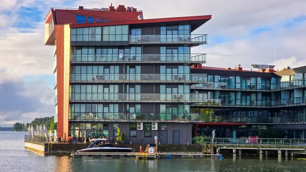 - balkony lub tarasy z widokiem na wodę.